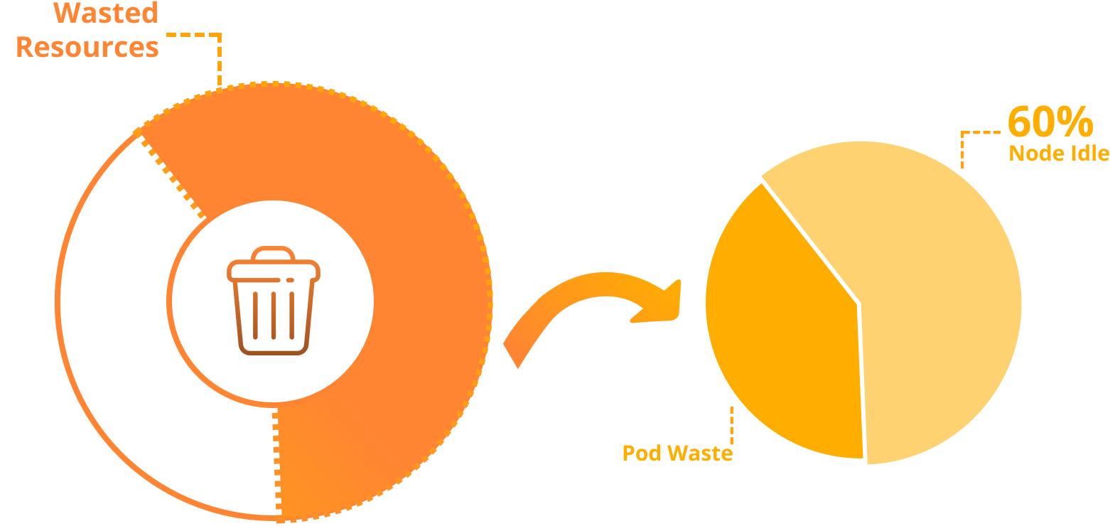 Workload sizing is only one part of optimization. Inefficiencies can still appear at the infrastructure layer. In customer clusters just starting their optimization journey, we often see up to 60% of wasted Kubernetes spend comes from idle (unutilized) node capacity. This often happens for a few reasons: limited node-level utilization visibility, suboptimal instance types, and autoscaling that relies on manually guestimated workload size.