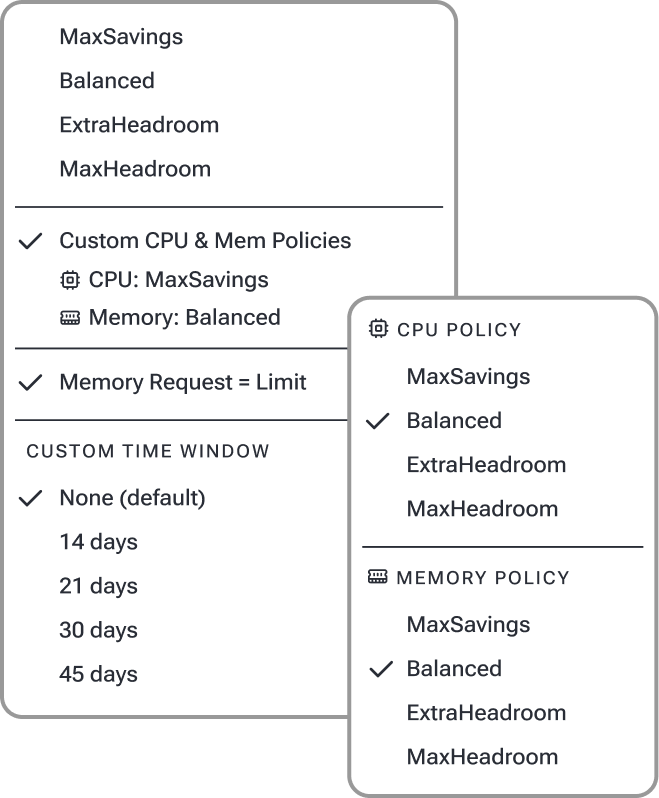 CPUs can often be adjusted more aggressively, as the JVM can generally handle short-term throttling (if it happens), often resulting in meaningful cloud cost reduction. Memory is different. JVM workloads manage heap and non-heap memory internally, and when container limits don’t align with JVM behavior, the result can be performance degradation, latencies, or even OOMKills. That is why resource allocation policies can't be unified. PerfectScale allows teams to define independent policies for CPU and memory, ensuring recommendations and automation are aligned with cost-efficiency goals and reliability requirements. On top of that, for memory-sensitive services, teams can leverage the request=limit policy. This will guarantee memory for such workloads and eliminate OOM risks or noisy-neighbor effects.
